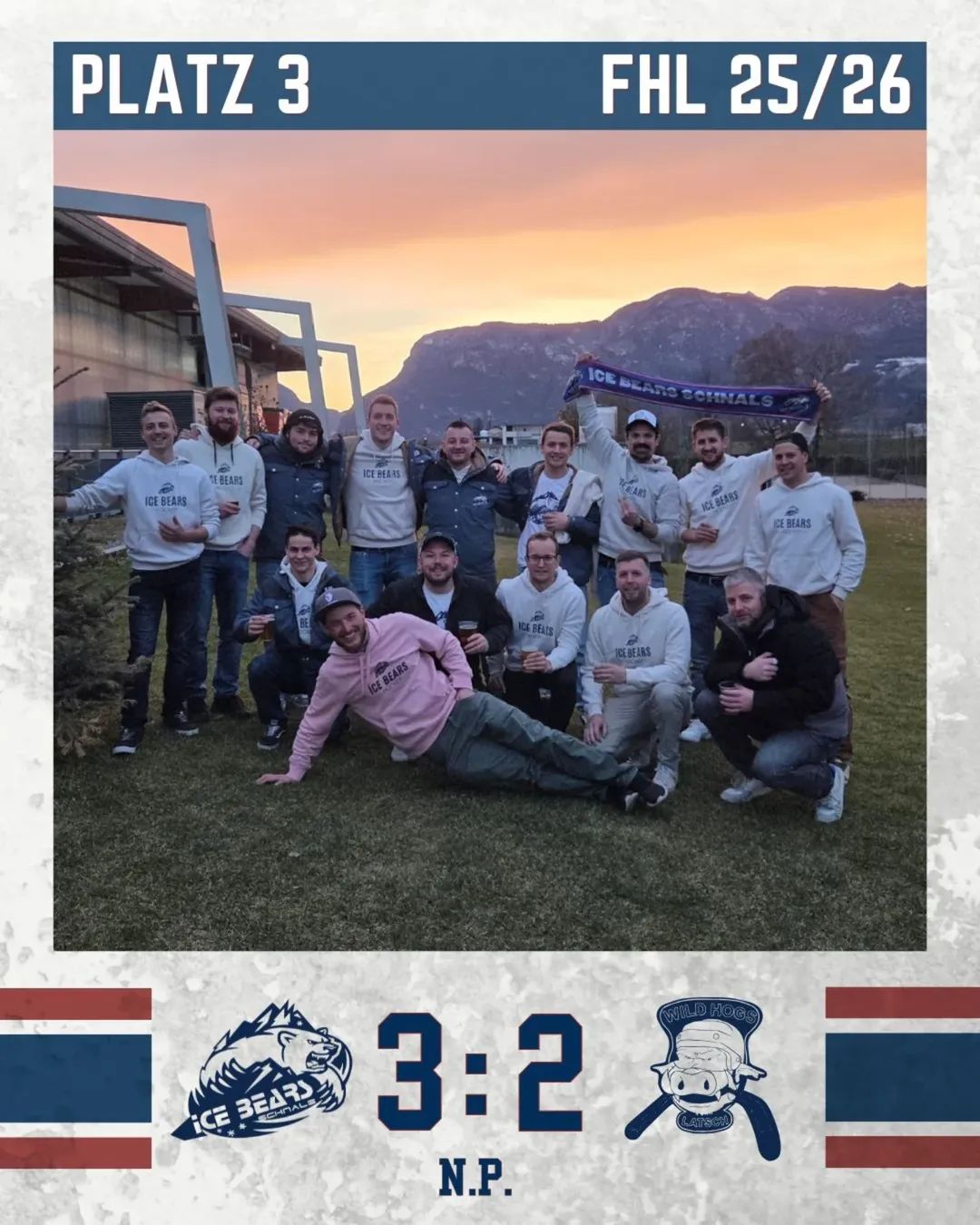 Es ging um den dritten Platz der FHL 25/26 beim Derby gegen die Wildhogs aus Latsch. Wie bei Derbys üblich, war es an Spannung kaum zu überbieten.Das Spiel spiegelte unsere gesamte Saison wieder. Ohne Biss und in einigen Situationen im Angriff sowie im Spielaufbau etwas verwirrt, gleitete unsere Truppe übers Eis, doch auch die Gegner konnten nicht viel Druck aufbauen. Nach einer Unterzahlsituation schafften es die Wildhogs, mit einem glücklichen Treffer in Führung zu gehen. In der ersten Drittelpause rüttelten unser Trainer und der Kapitän die Mannschaft wach, wodurch das Team besser ins Spiel kam. Nun wurde aus dem Gleiten ein Laufen und die Spielzüge wurden bedachter. Aber die Latscher hatten Blut geleckt und drangen auf den Ausbau der Führung. Somit ging es hin und her, es gab viele Chancen auf beiden Seiten, aber der Puck wollte für uns nicht ins Tor. Im Gegenzug wertete Zambiasi alles ab, was auf seinen Kasten zuflog.